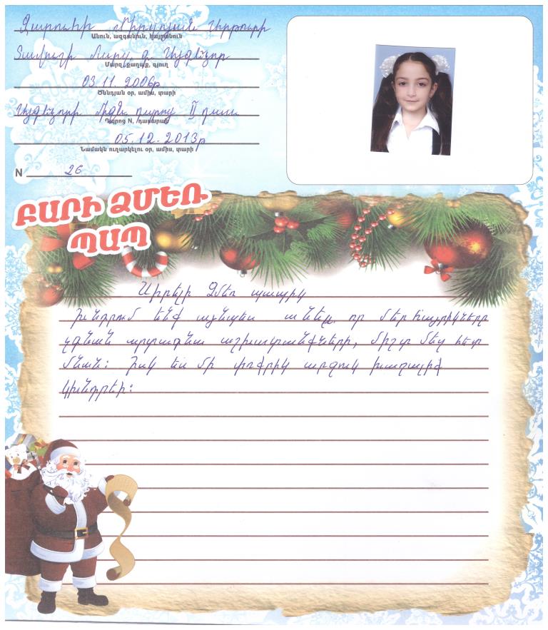 Արտագնա աշխատանքի գնացողների թեմայով ես էլ եմ շատ մտածում, բայց դեռեւս դժվար է ու ժամանակ է պահանջում: Պետք է բոլոր հայերով այնպես անենք, որ Հայաստանում շատ աշխատատեղեր բացվեն ու հայրիկները տանը մնալով կարողանան լավ աշխատանք գտնել ու չգնան ուրիշ երկրներ...