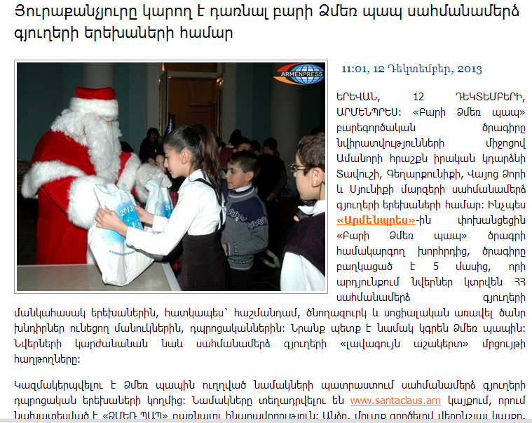 Յուրաքանչյուրը կարող է դառնալ բարի Ձմեռ պապ սահմանամերձ գյուղերի երեխաների համար | ԱՐՄԵՆՊՐԵՍ... armenpress.am